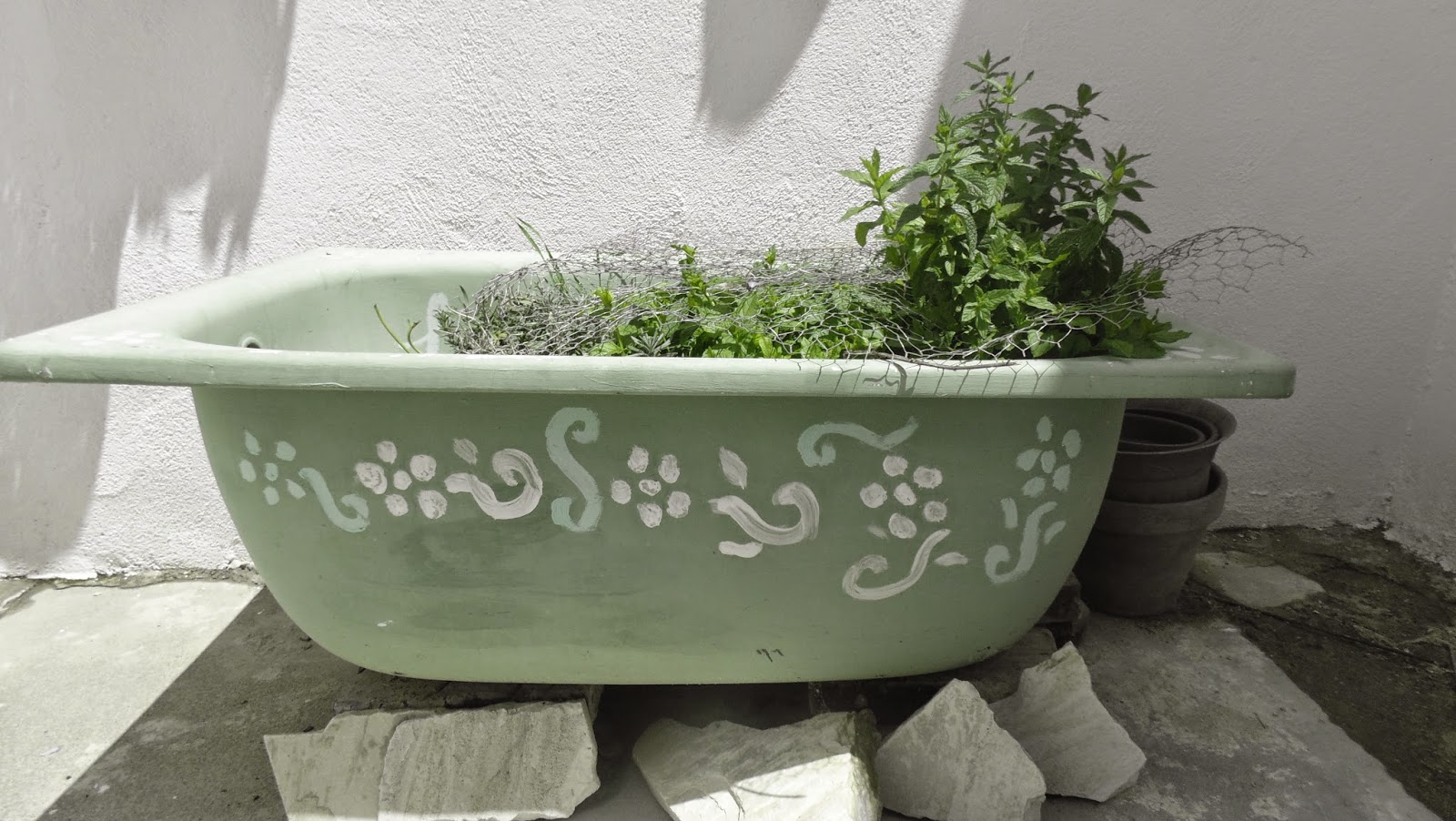 mini-huerto en unos cajones de madera que aun nos queda por montar, un árbol en